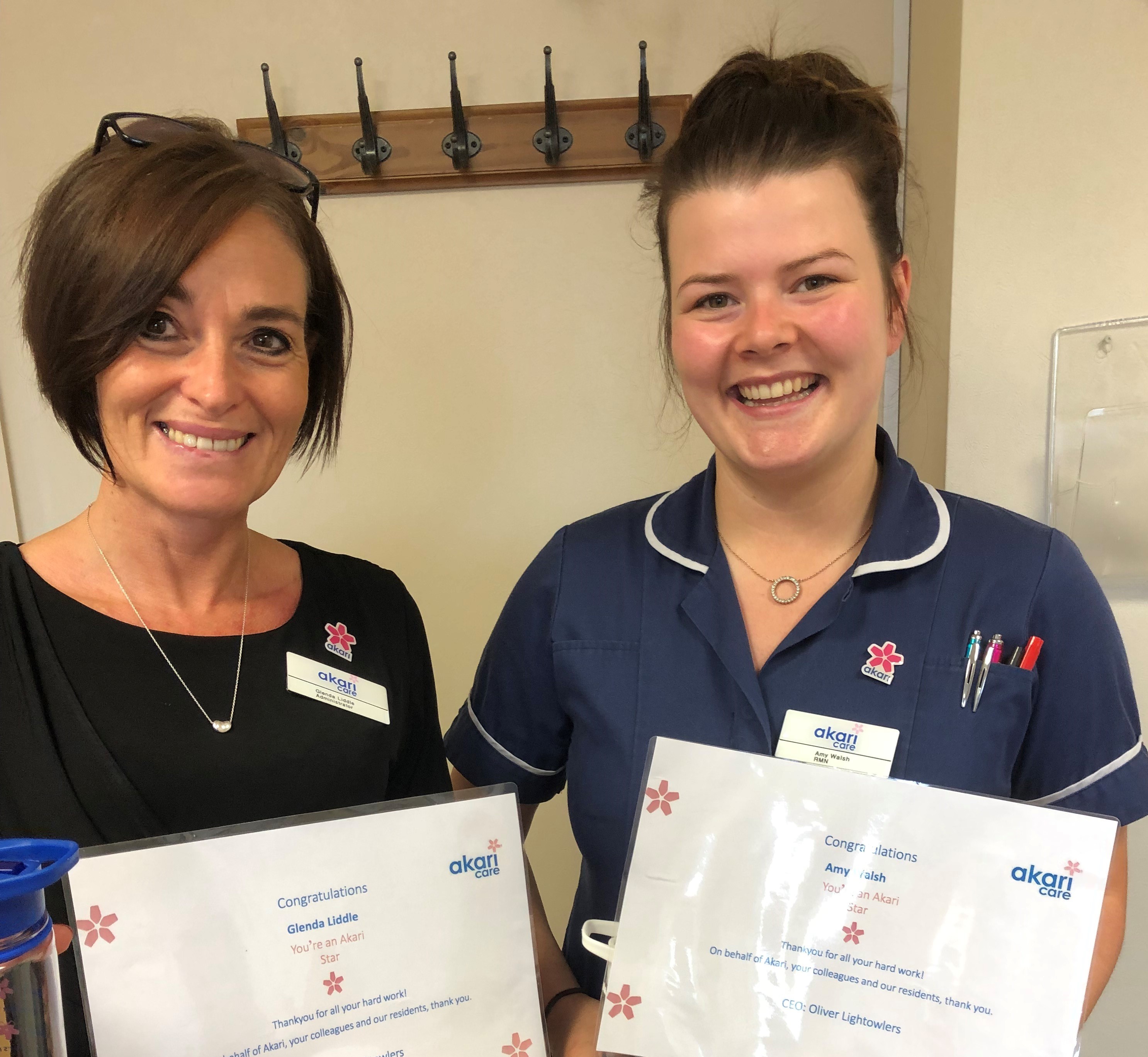 Amy our RMN has also been awarded a pink Akari Star for "developing immensely since starting at Pavilion Court, she has learnt so much and has made a huge difference to the quality of lives of the residents in her care. Visiting professionals and family members find her approachable, reassuring and confident and I have received many compliments about her since she started"