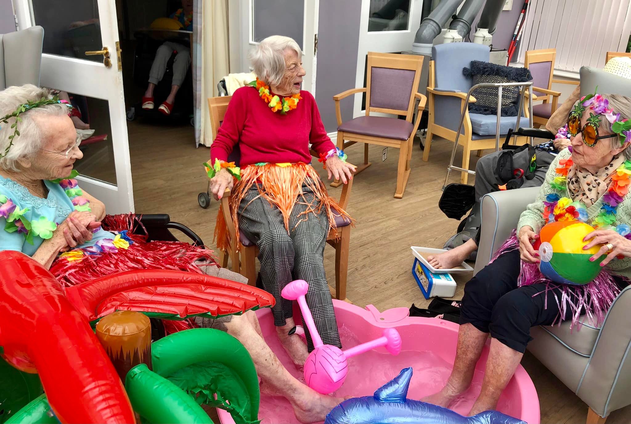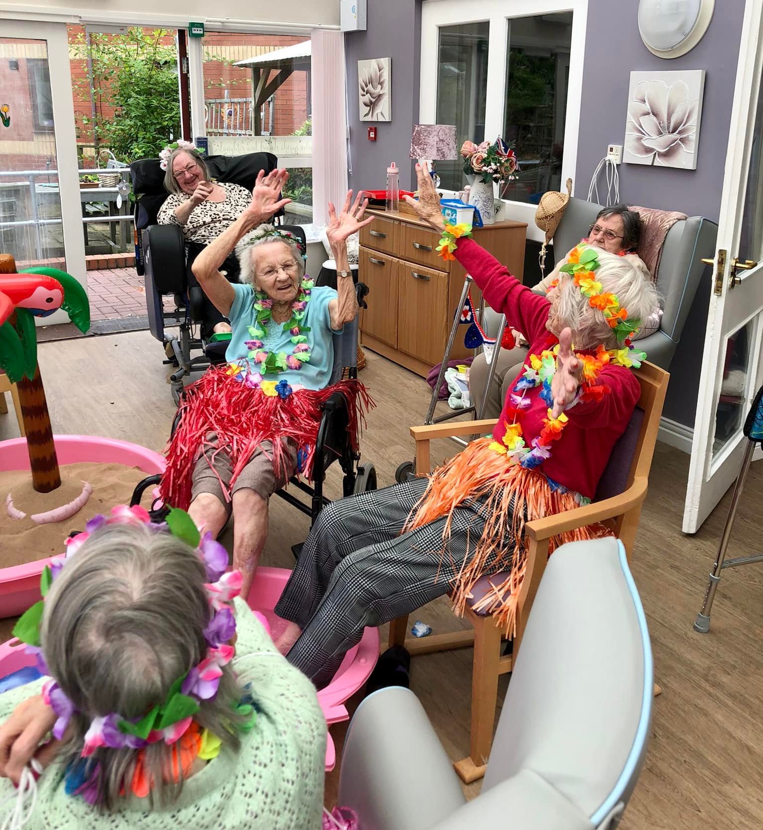 We brought the beach to our residents with our fantastic 𝑯𝒂𝒘𝒂𝒊𝒊𝒂𝒏 𝑷𝒂𝒓𝒕𝒚 enjoying the sun, sea and sand #redbrickhouse #activities #hawaiian Akari Care