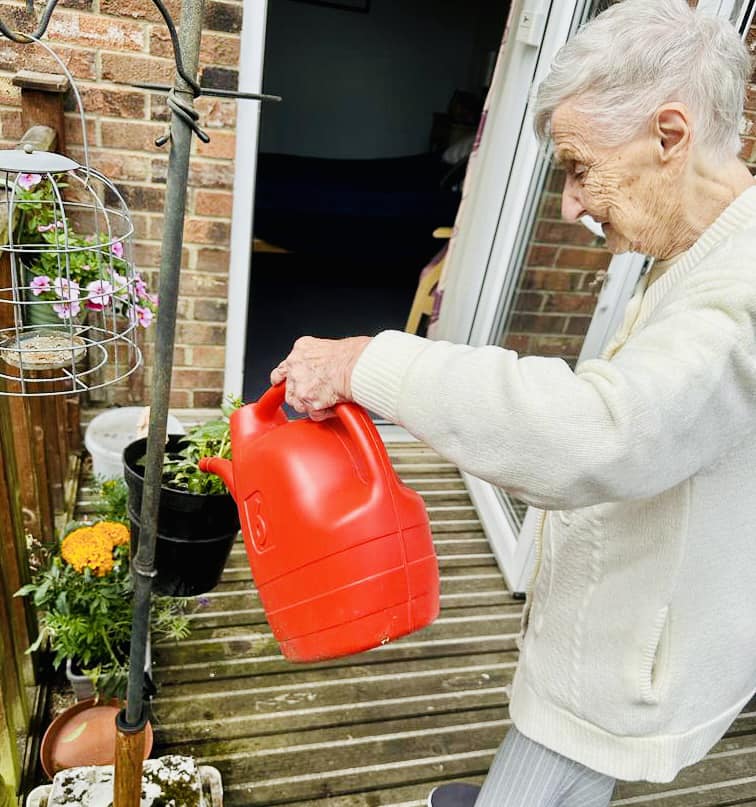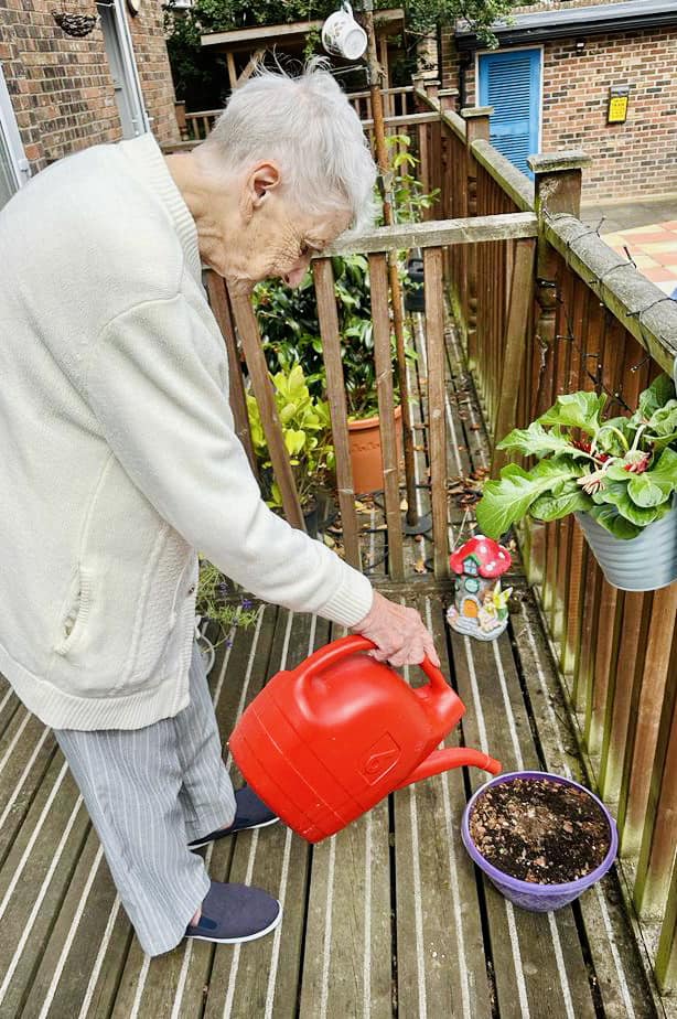 Our lovely Moorfield resident Mina enjoys nothing more than pottering around her balcony watering her flowers