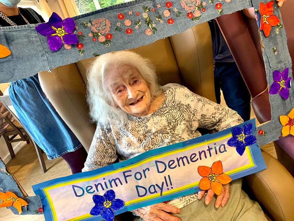 Hilltop Lodge were supporting the Denim For Dementia campaign raising money for the Alzheimer's Society as part of Dementia Action Week with residents enjoying a day of fun, dancing and crafts making this incredible denim photoboothÂ