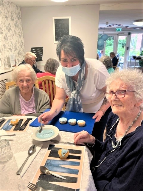 Seale Pasture's residents enjoying 'Denim For Dementia' day baking cakes and enjoying the denim theme as part of Dementia Action Week ❀