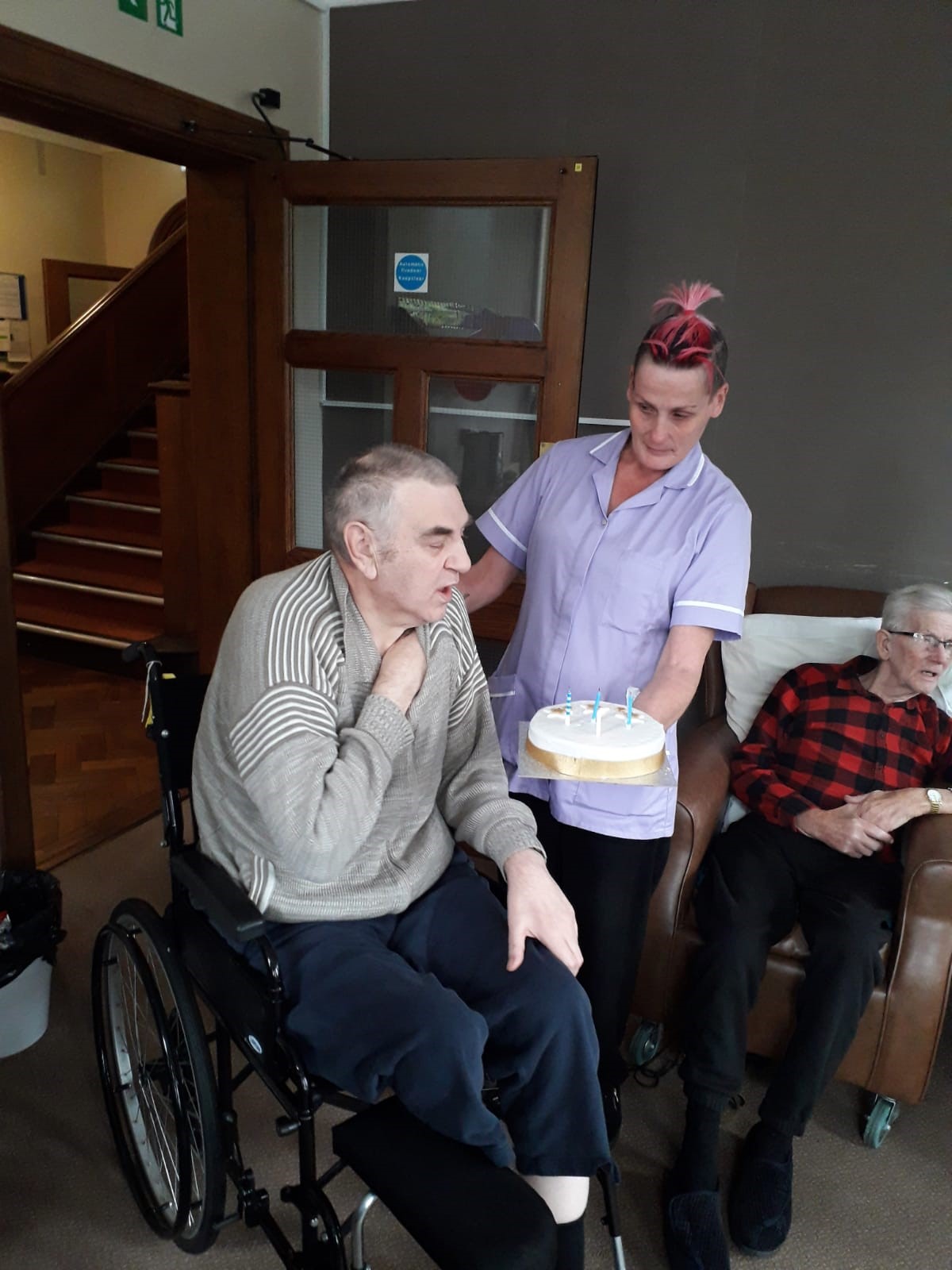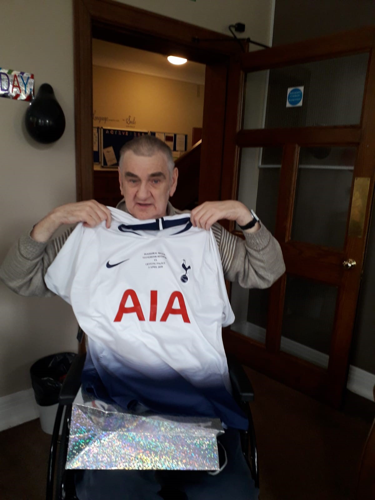 For this particular residents birthday all the staff contributed to a 'birthday pot' and for our wonderful and avid Tottenham Hotspur fan we bought the latest shirt and a plaque to pop up in his room. We also threw his a surprise party with all his newly made friends at Frindsbury Hall!