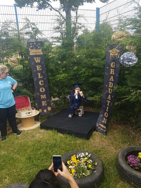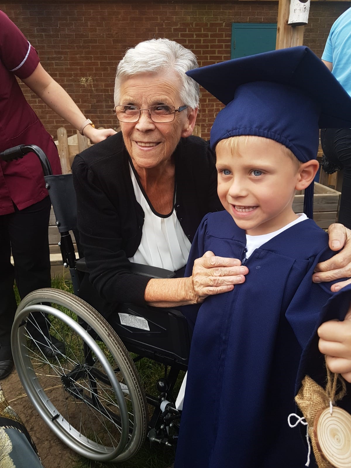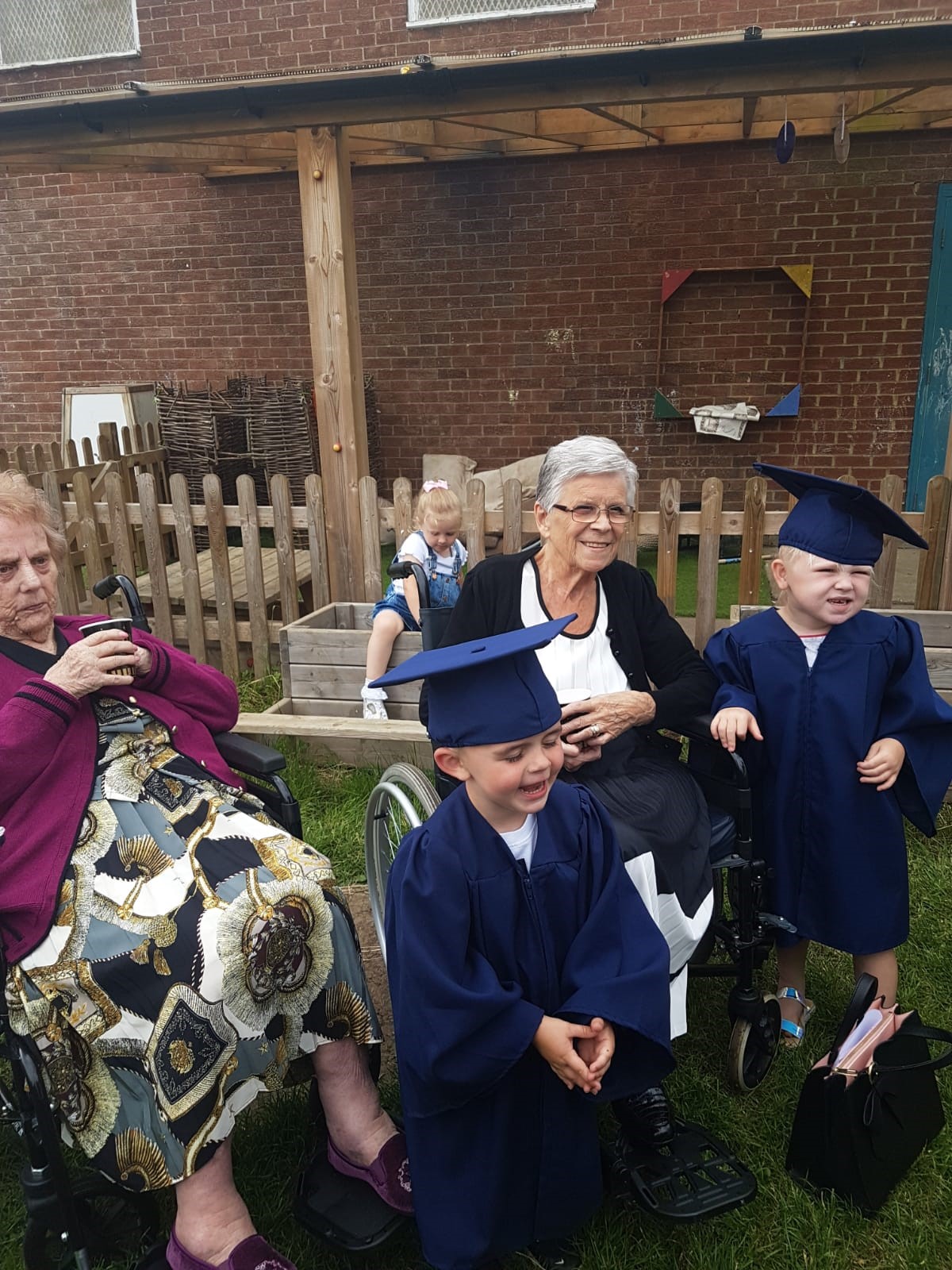 As promised last week after our final Cognitive Stimulation Therapy session for the summer, some of our residents at Piper Court in Stockton attended the Rosedene Nursery Graduation this afternoon.