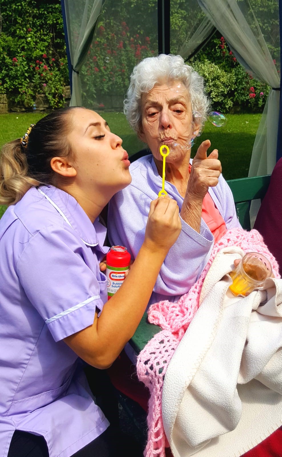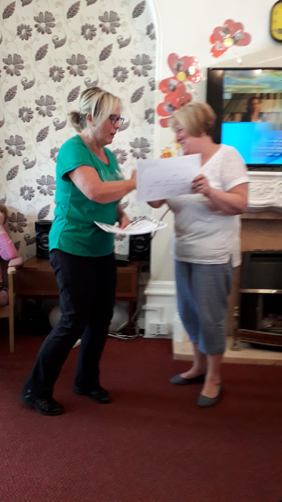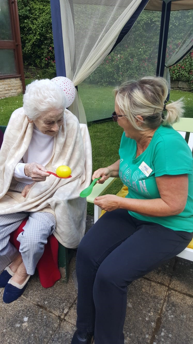 The staff and residents have all taken part in an egg and spoon race, blowing bubbles, apple bobbing, a sack race and a very special staff only 3-legged race which our residents particularly loved!