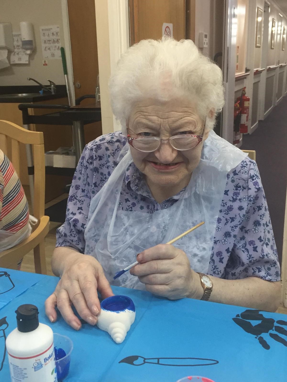 It's been a day full of the arts at Comfort House, we started the day with some dancing and have spent the afternoon painting shell tea light holders.