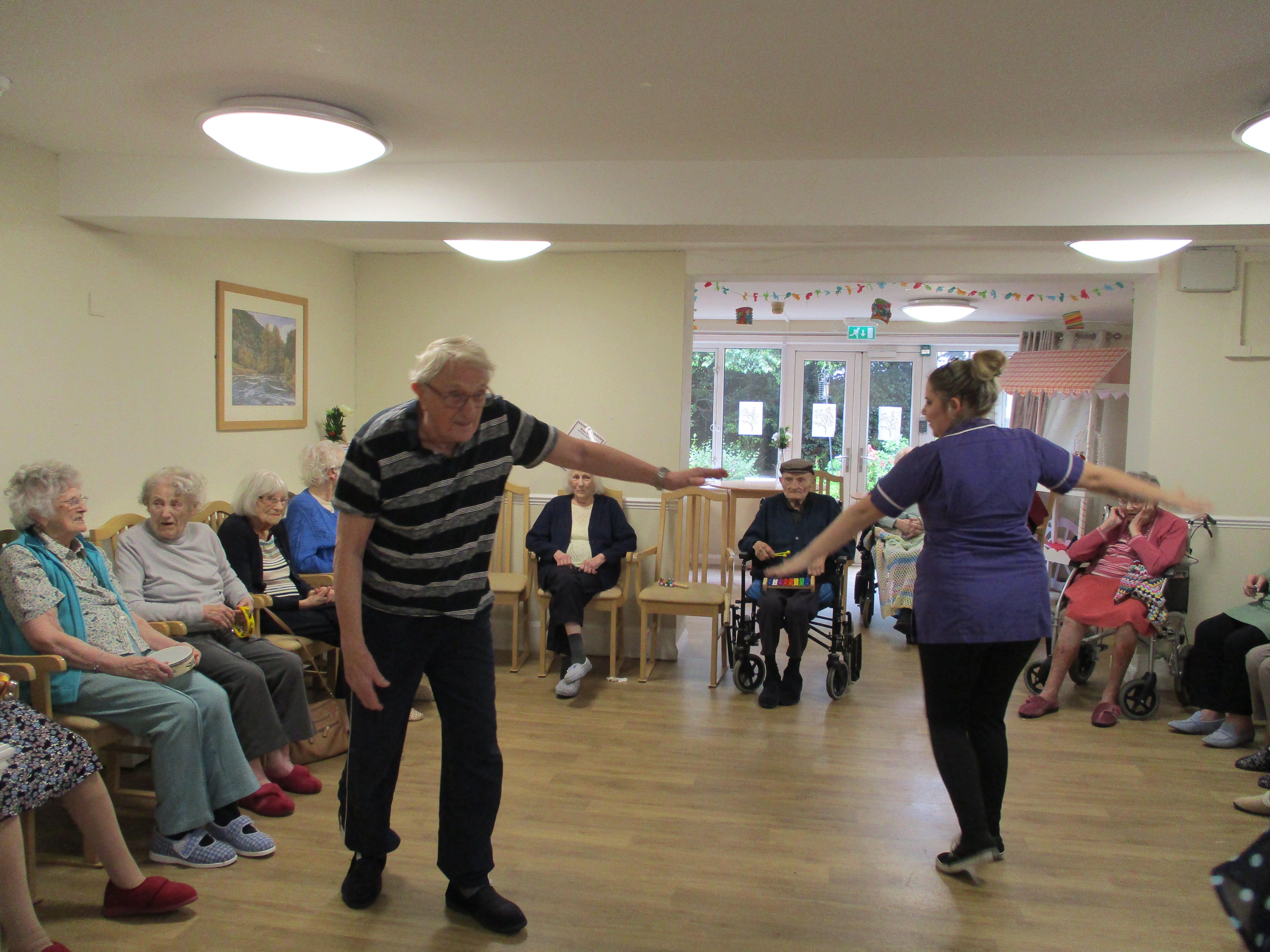 Our in house dance teacher (and our chef) Richard, shared his skills with us and is in the process of teaching one of our keener residents to dance. Once all the serious dancing was finished of course we requested "I am the music man" just to make sure we still had the moves!