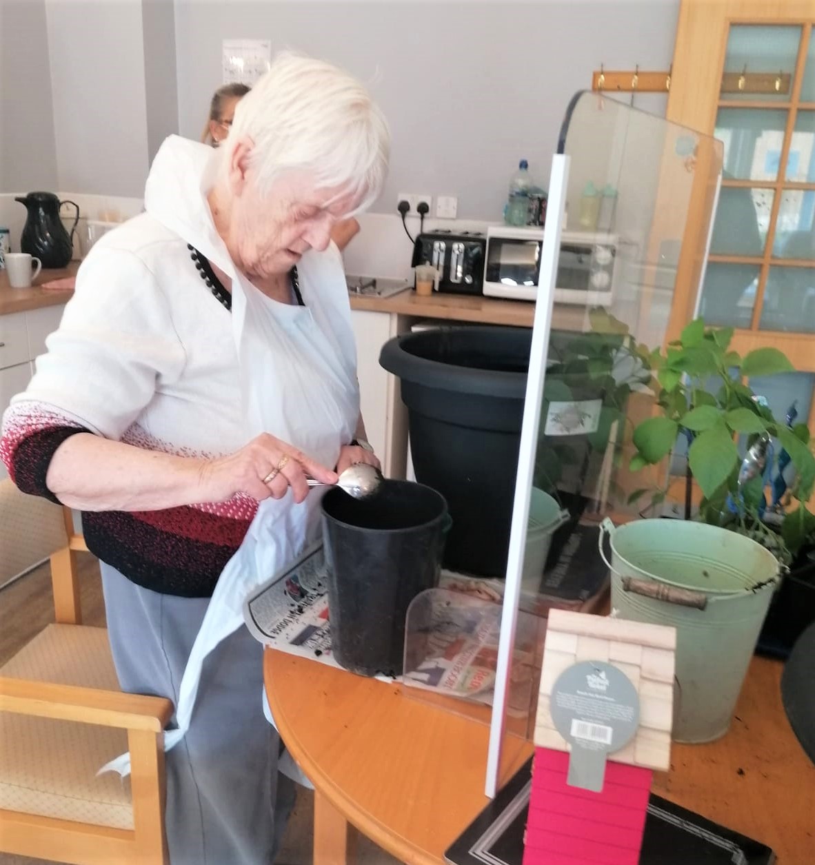 The 'Ground Force' team at St Marks Court are hard at work today in the garden. Alan Titchmarsh hasn't got a patch on our residents who are busy re-potting and planting pansies for the 'Big Garden Project'